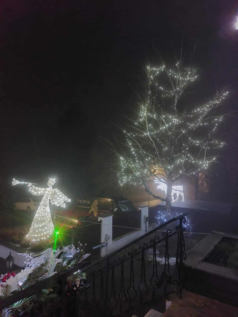 Svítí i celá bříza před domem.